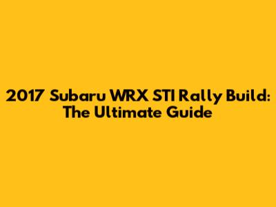 2017 Subaru WRX STI Rally Build: The Ultimate Guide