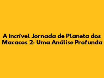 A Incrível Jornada De Planeta Dos Macacos 2: Uma Análise Profunda