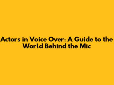 Actors In Voice Over: A Guide To The World Behind The Mic