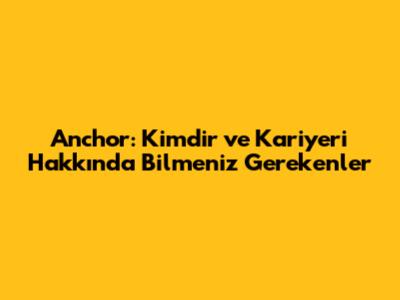 Anchor: Kimdir Ve Kariyeri Hakkında Bilmeniz Gerekenler
