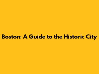 Boston: A Guide To The Historic City
