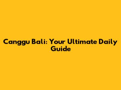 Canggu Bali: Your Ultimate Daily Guide