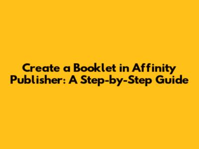 Create A Booklet In Affinity Publisher: A Step-by-Step Guide
