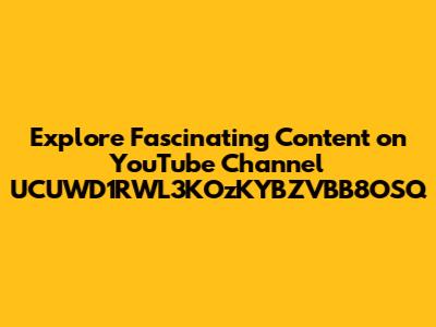 Explore Fascinating Content On YouTube Channel UCUWD1RWL3KOzKYBZVBB8OSQ