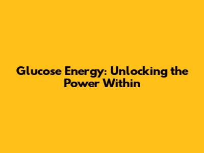 Glucose Energy: Unlocking The Power Within