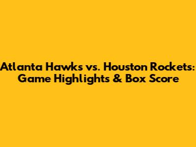 Hawks Vs. Rockets: Game Highlights & Box Score