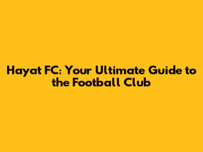 Hayat FC: Your Ultimate Guide To The Football Club