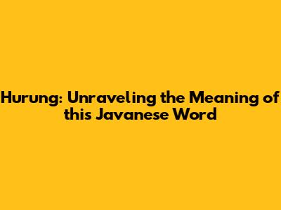 Hurung: What Does It Mean In Javanese?