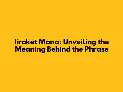 Iiroket Mana: Unveiling The Meaning Behind The Phrase