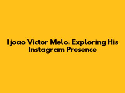 Ijoao Victor Melo: Instagram Insights And More!