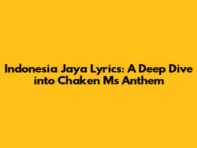 Hey everyone! Let's dive into the lyrics of Indonesia Jaya, a song that's basically an anthem for the country, written and performed by the talented Chaken M. This isn't just any song, guys; it's a powerful expression of love, pride, and hope for Indonesia. We'll be breaking down the lyrics, exploring the meaning behind each verse, and figuring out why this song resonates so deeply with so many people. Get ready to feel those patriotic vibes! Seriously, understanding the Indonesia Jaya lyrics is like getting a crash course in Indonesian culture and history. We're going to uncover what makes this song so special and why it's still so relevant today. From the simple yet profound words to the uplifting melody, everything about this song is designed to stir your soul and make you feel proud to be Indonesian. So, grab a cup of coffee (or teh manis, if you're feeling authentic!), and let's get started. By the end, you'll not only know the lyrics by heart but also understand the song's significance within the broader context of Indonesian identity. It's a journey, people, and it's going to be awesome!
