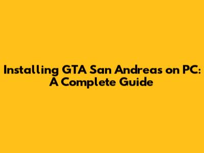 Installing GTA San Andreas On PC: A Complete Guide