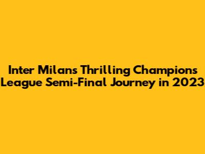 Alright, football fanatics, let's dive deep into Inter Milan's incredible run to the Champions League semi-finals in 2023! It was a season filled with drama, stunning performances, and nail-biting moments that kept us all on the edge of our seats. From the group stages to the final four, Inter showcased their tactical prowess and the unwavering spirit that defines a true European powerhouse. This article is your ultimate guide, breaking down every crucial match, highlighting key players, and giving you the inside scoop on how Inter Milan conquered Europe in the 2022-2023 season. So, grab your jerseys, get comfortable, and let's relive this unforgettable journey!