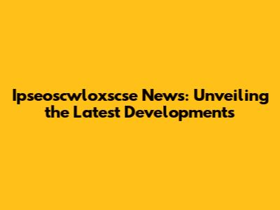 Ipseoscwloxscse News: Latest Updates And Breaking Stories