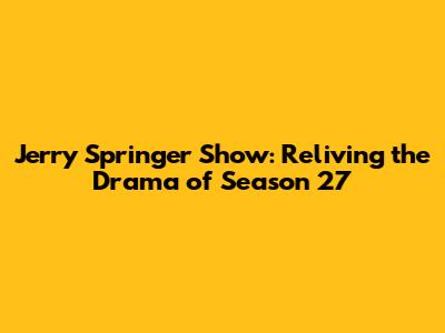 Jerry Springer Show: Reliving The Drama Of Season 27
