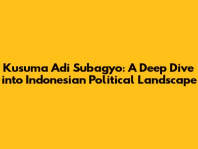 Hey there, folks! Ever heard of Kusuma Adi Subagyo? If you're into Indonesian politics, chances are you've come across this name. He's a significant figure, and today, we're diving deep into his life, career, and impact on the Indonesian political scene. This article aims to give you a comprehensive understanding of Kusuma Adi Subagyo, exploring his contributions and the mark he's left on the nation. Buckle up; it's going to be a fascinating ride!