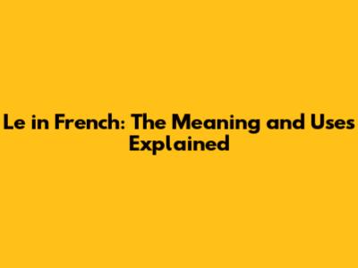 Le In French: The Meaning And Uses Explained