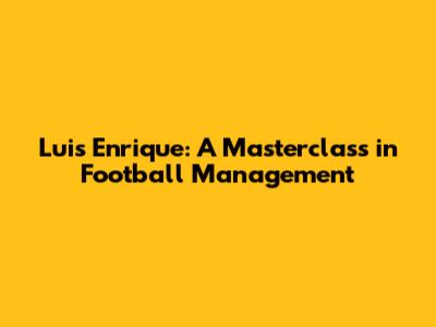 Luis Enrique: A Masterclass In Football Management