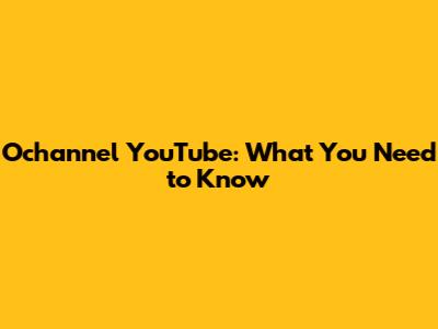 Ochannel YouTube: What You Need To Know