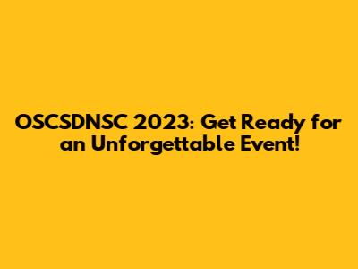 OSCSDNSC 2023: What You Need To Know