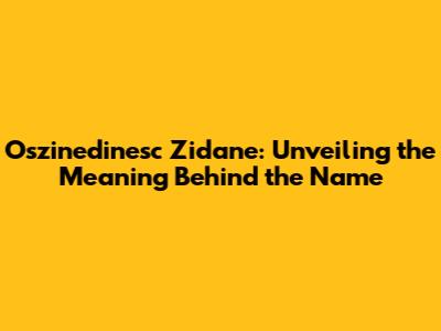 Oszinedinesc Zidane: Meaning And Origin