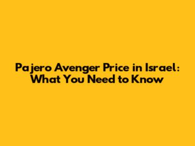 Pajero Avenger Price In Israel: What You Need To Know