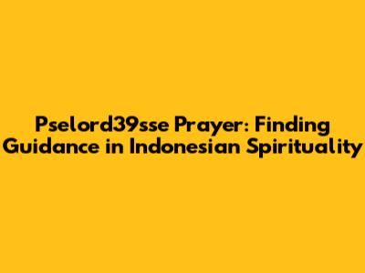Pselord39sse Prayer: A Guide For Indonesian Seekers