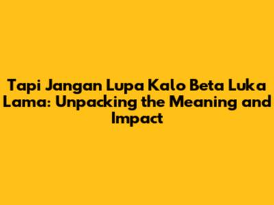 Hey guys! Ever heard a phrase that just sticks with you, resonating on a deeper level? Well, "Tapi Jangan Lupa Kalo Beta Luka Lama" is one of those phrases for many. Originating from Indonesian or Malay-speaking regions, this saying carries a weighty emotional message. Let's break it down, understand its meaning, and explore why it resonates so strongly with people.
