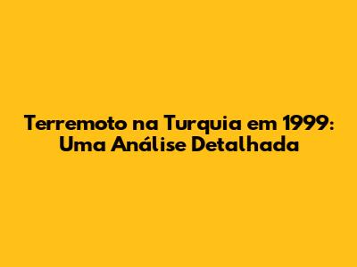 Terremoto Na Turquia Em 1999: Uma Análise Detalhada