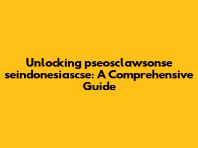 Unlocking Pseosclawsonse Seindonesiascse: A Comprehensive Guide
