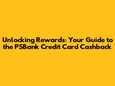Unlocking Rewards: Your Guide To The PSBank Credit Card Cashback