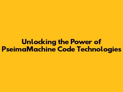 Unlocking The Power Of PseimaMachine Code Technologies