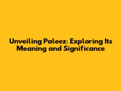 Unveiling Paleez: Exploring Its Meaning And Significance