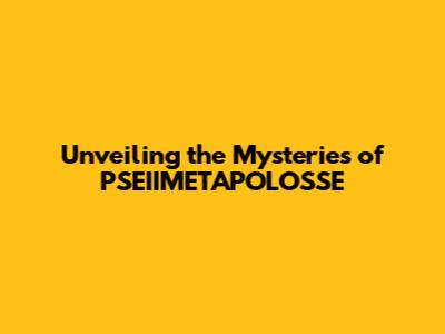 Unveiling The Mysteries Of PSEIIMETAPOLOSSE