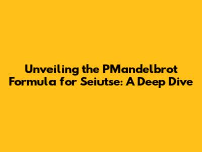 Unveiling The PMandelbrot Formula For Seiutse: A Deep Dive