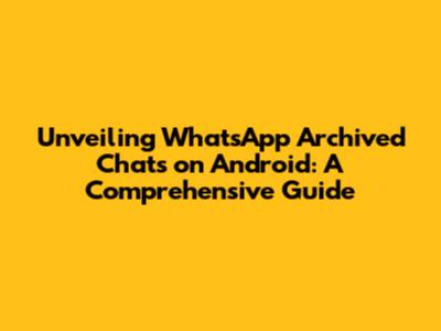 Unveiling WhatsApp Archived Chats On Android: A Comprehensive Guide