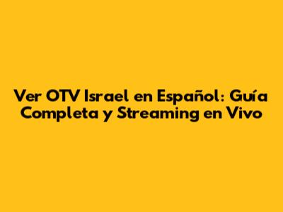 Ver OTV Israel En Español: Guía Completa Y Streaming En Vivo