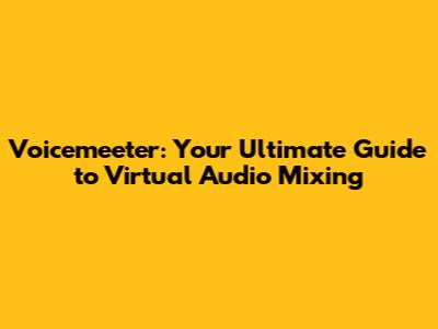 Voicemeeter: Your Ultimate Guide To Virtual Audio Mixing